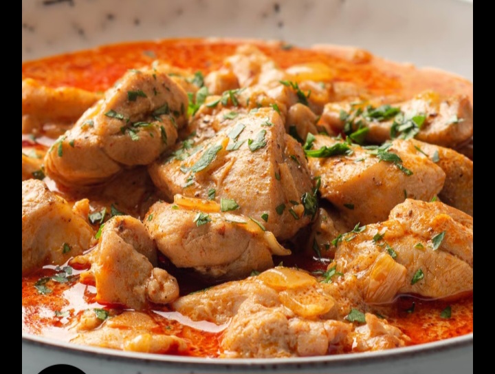 Paprikás (ungarisches Hähnchengulasch) mit Löffelknödeln u. Kartoffeln 9,10 €